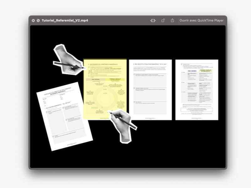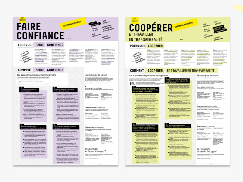 Nous avons proposé 3 outils d’animation de la démarche : posters référentiel, un formulaire de soutien à l’échange et au positionnement sur le référentiel, Un tutoriel pour faciliter son appropriation. Chacun de ces outils a été co-conçu avec les managers puis testés en situation réelle.